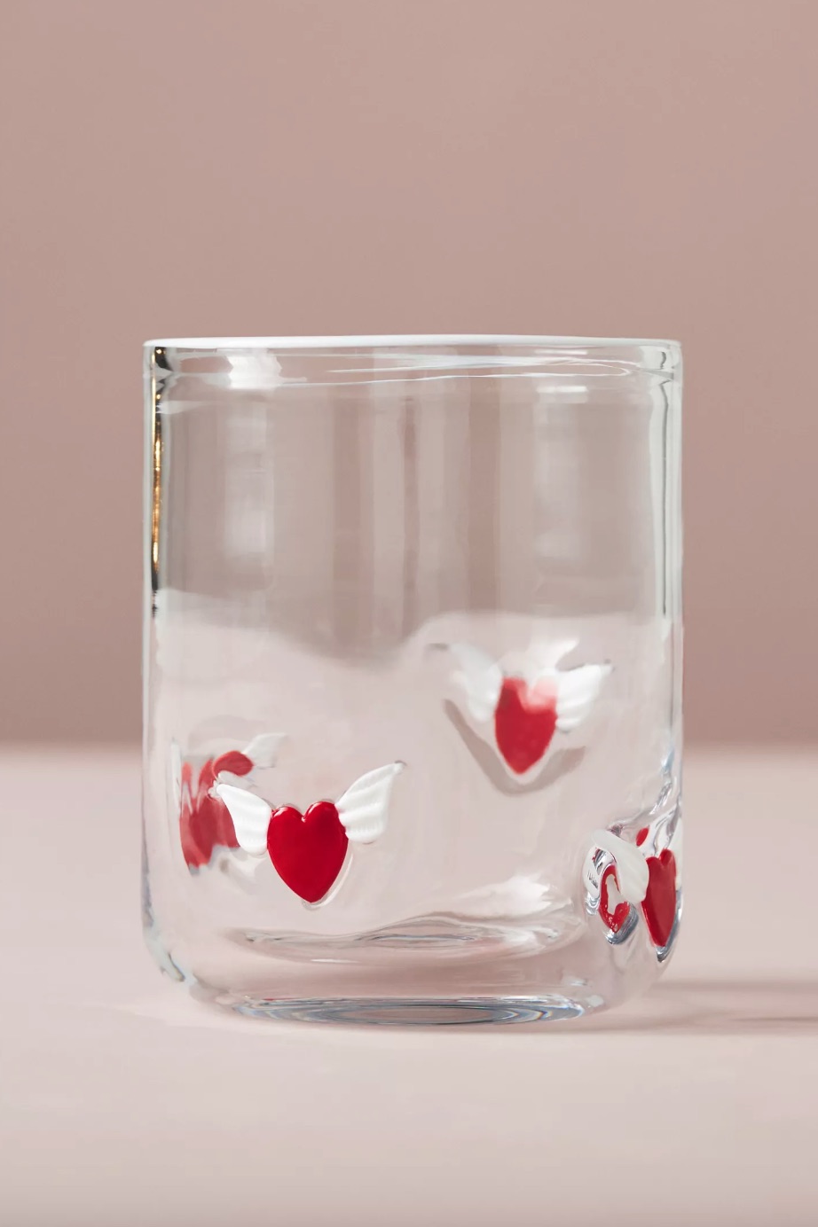 Exchange the regular tumbler with a stylish Valentine's Day inspired one from Anthropologie's Icon range. Thoughtfully made with hand-pressed glass beads and hand-blown glass, it showcases winged hearts and pouting lips, in an attractive pink and red color palette.