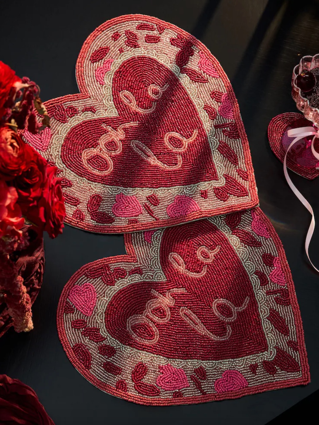 Crafted from glass beads that have been elegantly intertwined, these heart-shaped placemats are now firmly on my list of desired items. I appreciate their vibrant and slightly playful style – and there are coordinating coasters available as well.