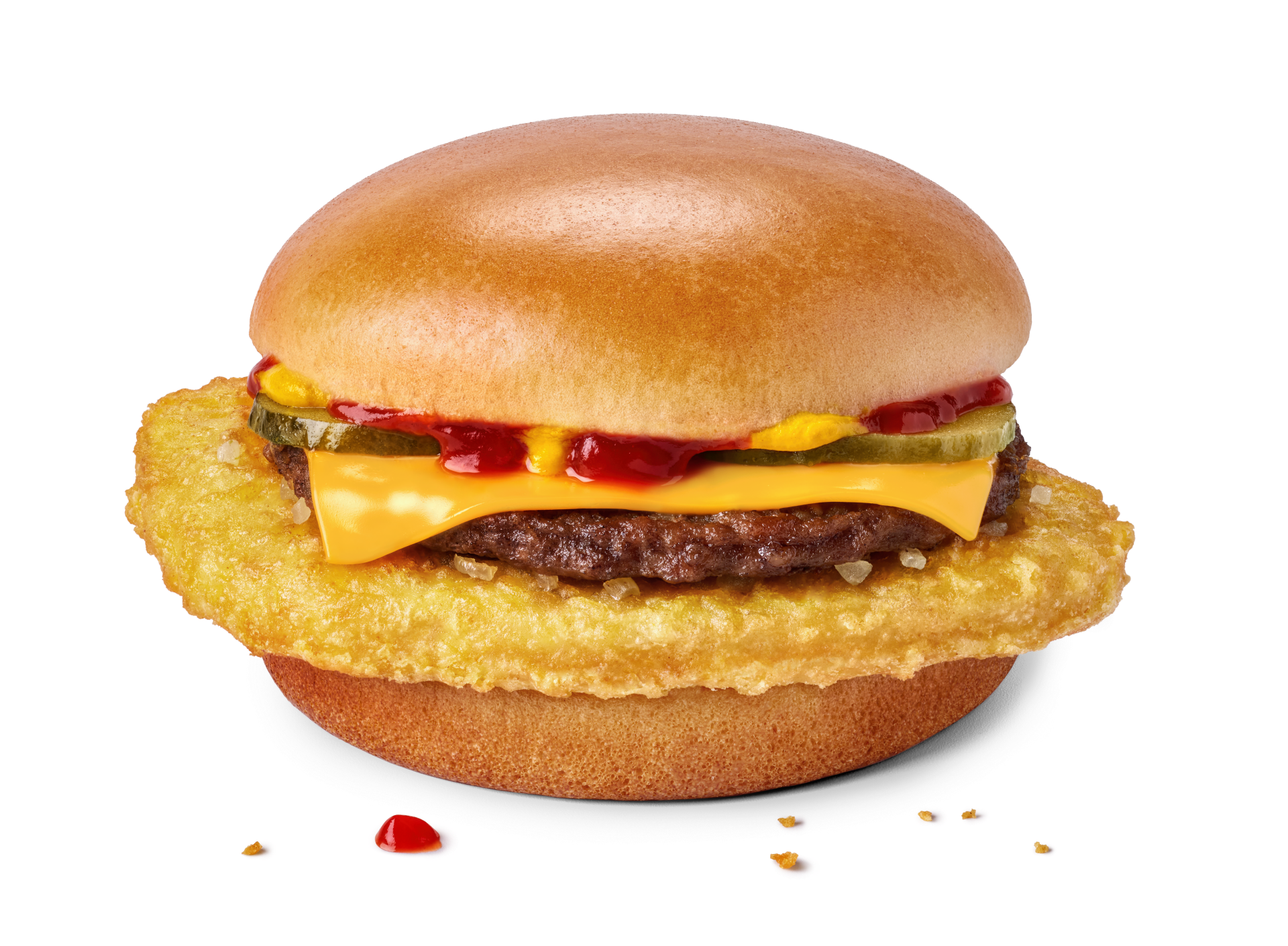 This new offering is perfect for those who find it hard to decide between a Cheeseburger and a Filet-O-Fish when ordering from McDonald’s. Now, there's no need to choose, as this combo includes two British & Irish beef patties, a crunchy white Alaskan Pollock fish fillet patty, cheese, onions, pickles, mustard, and a scoop of ketchup, all served in a bun.