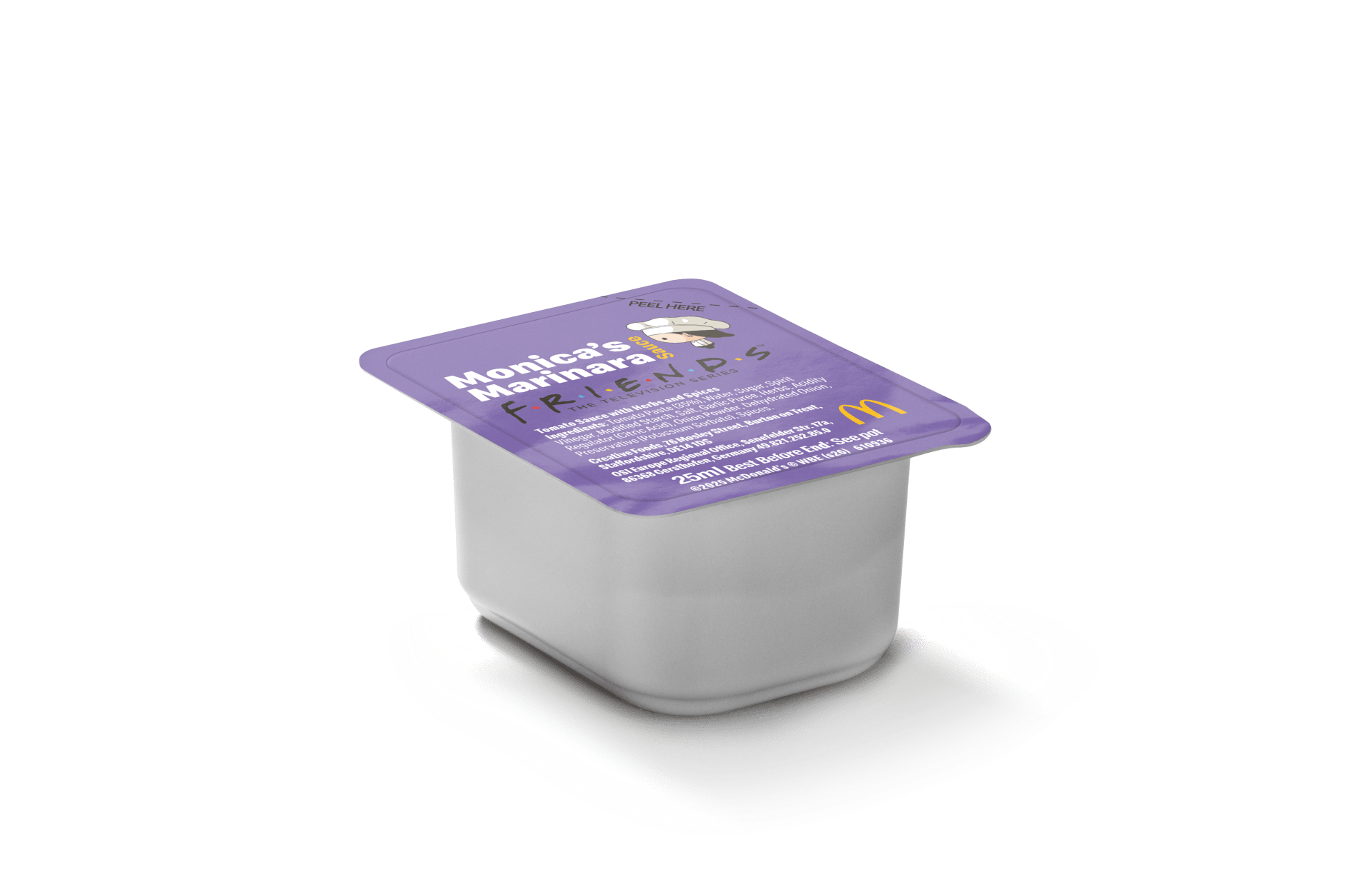 Specifically designed for the Friends collaboration, this sauce is characterized as a 'tomato-based marinara with a savory and herbal flavor,' and typically, marinara sauce consists of tomato, garlic, herbs, and onions.