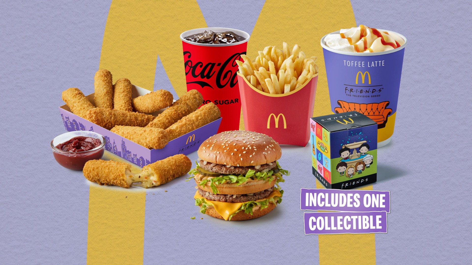 The latest meal option includes a Big Mac, McPlant, or 9-piece McNuggets, fries, and a beverage, but the standout addition is that the meal comes with acollectible toy featuring your favorite characters, featuring limited-edition figurines of Rachel, Monica, Phoebe, Joey, Chandler and Ross to collect.