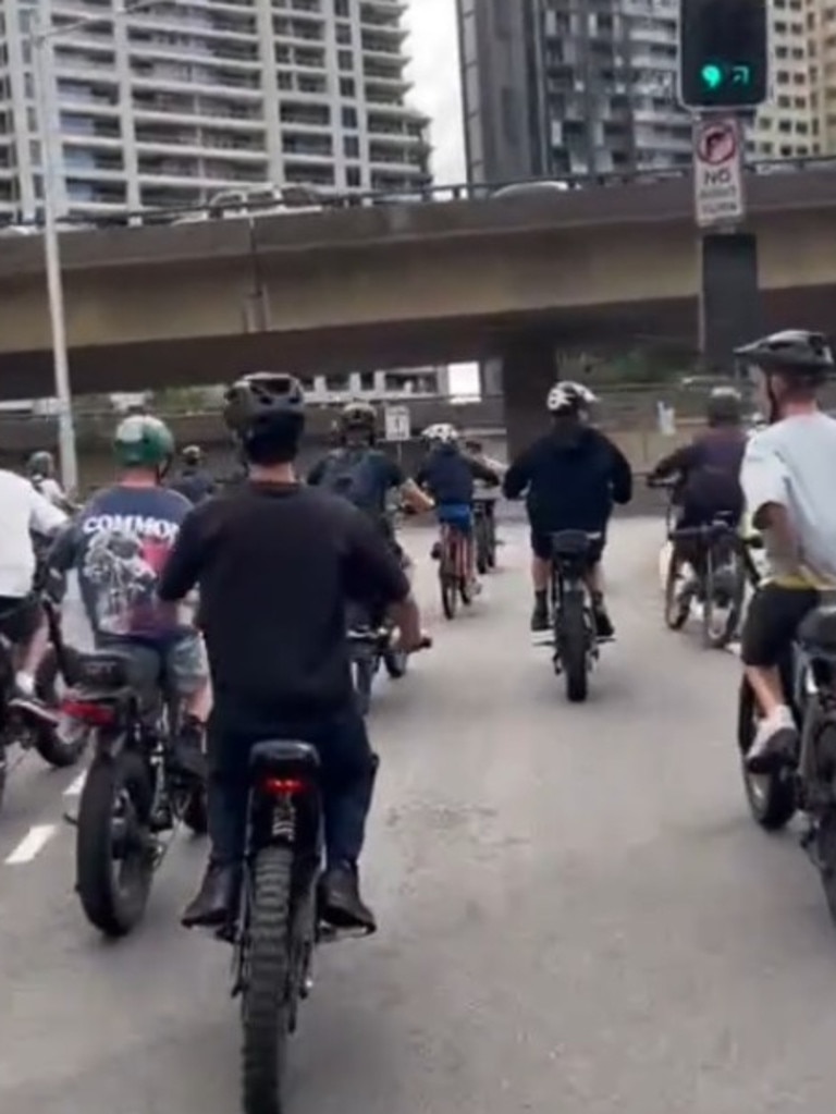 The group later executed wheelies and sped recklessly through Sydney's streets, with some riders capturing the moment on camera.