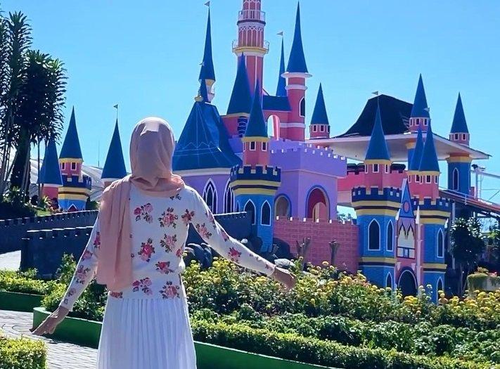 Selain menyajikan keindahan taman bunga, pengunjung juga bisa menikmati berbagai permainan dan fasilitas menarik di dalamnya.